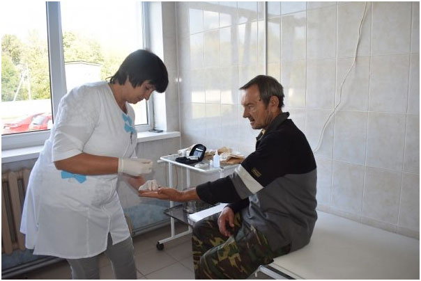 В этот же день, в рамках акции, на ФАПе местные жители могли пройти сестринский осмотр, в том числе измерить давление, сахар в крови,получитьконсультацию. Прием вели медсестра ЛяличскогоФАПа А.Д. Хондожко и фельдшер Лопазненской амбулатории Е.Ф. Нестеренко. Консультацию по вопросам медицинского обслуживания местные жители получили от специалистов департамента здравоохранения Брянской области — главного консультанта Н.В.Герасиной и главного специалиста-терапевта Ю. Куницына, которые в этот день также побывали в ЦРБ и на ЛяличскомФАПе.