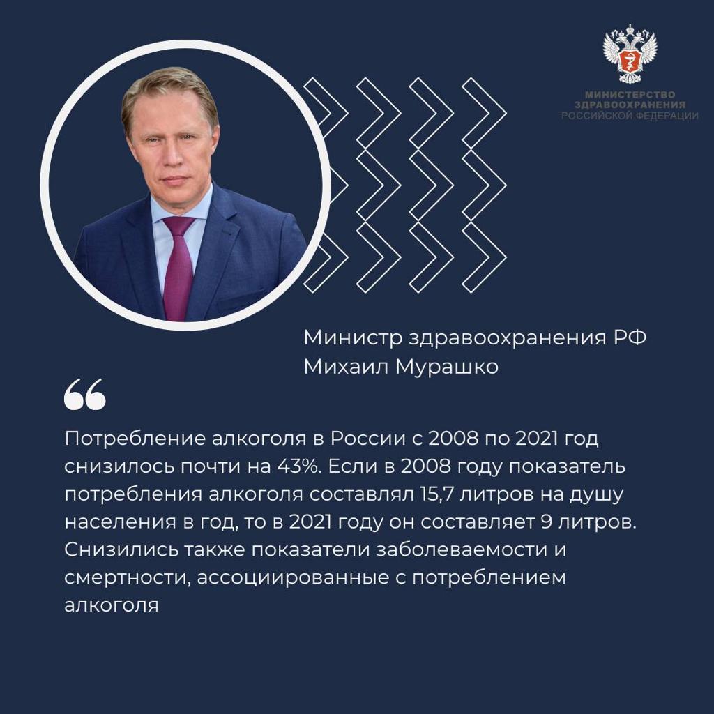 Михаил Мурашко: Потребление алкоголя в России снизилось почти на 43% с 2008 года